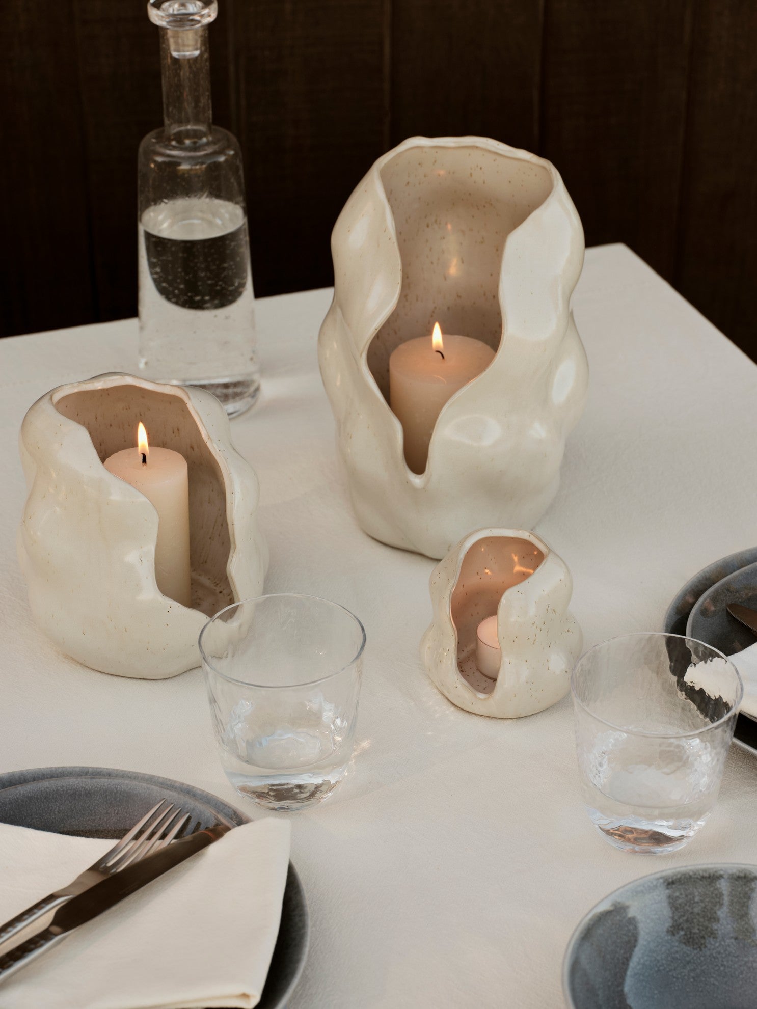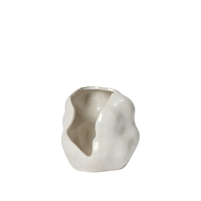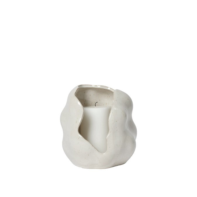 עששית הקלה משלבת צורה גולמית ופיסולית עם זיגוג ריאקטיבית מבריקה